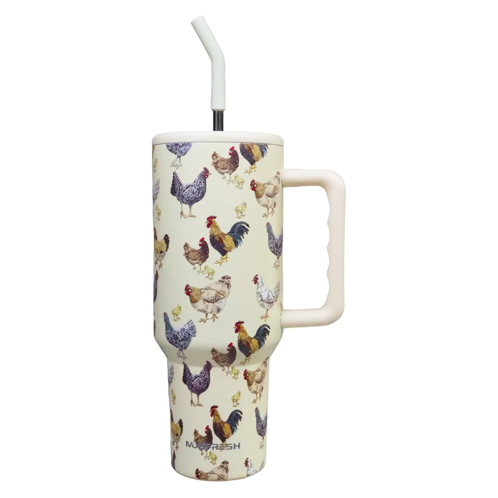 [CUPHOLDER FRIENDLY - Tapered design 40 oz tumbler with handle effortlessly fits into most car cup holders. Take Us With You wherever you go. LEAK RESISTANT - Our tumbler comes with dust-proof cap on the lid keeping the straw hygienic at any time and preventing lesks while the cap is on. DOUBLE-WALL INSULATION - The stainless steel tumbler can keep beverages hot or cold for hours. DURABLE - Made of premium 18/8 stainless steel making it the perfect choice for rough-and-tumble use. PERFECT GIFT - This insulated iced coffee cup for sports travel driving and more. It can be a surprise gift for your family friends colleagues.]