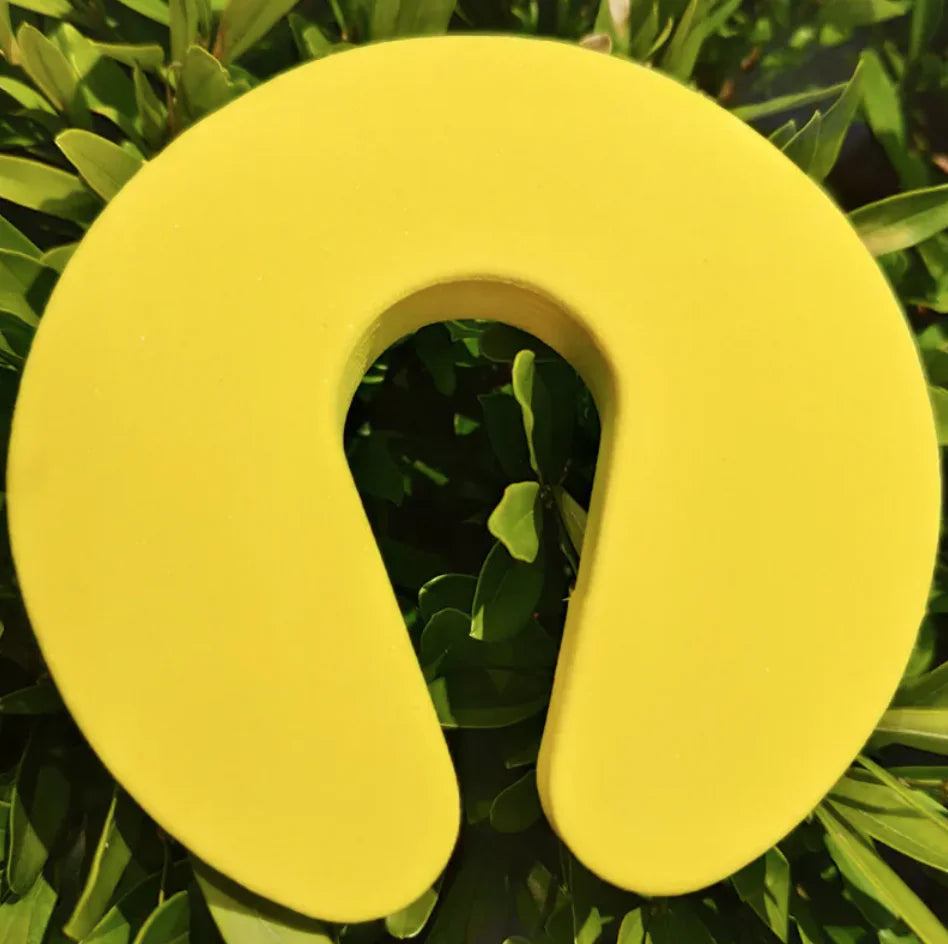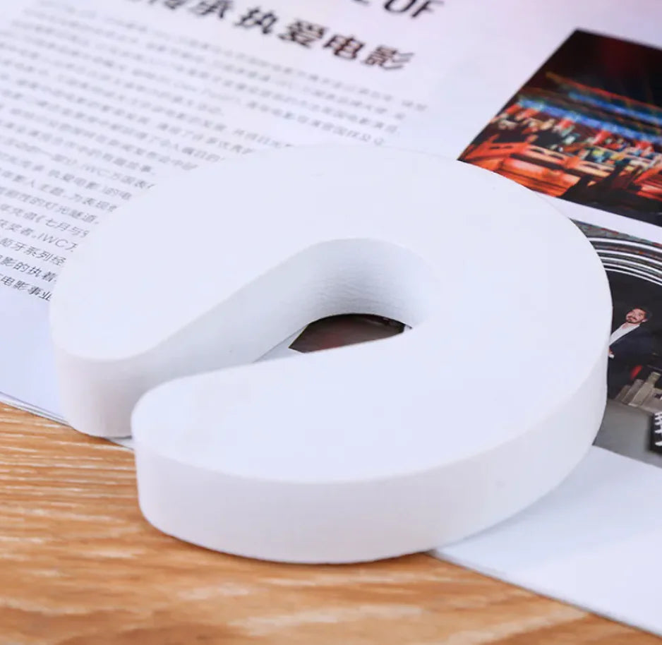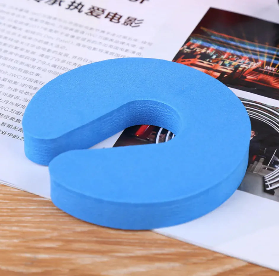 Protect your child's fingers with this soft EVA foam door stopper. Fits most doors and prevents accidental slams. Easy to use, lightweight, and available in multiple colors. Size: 9x10x1.5cm.