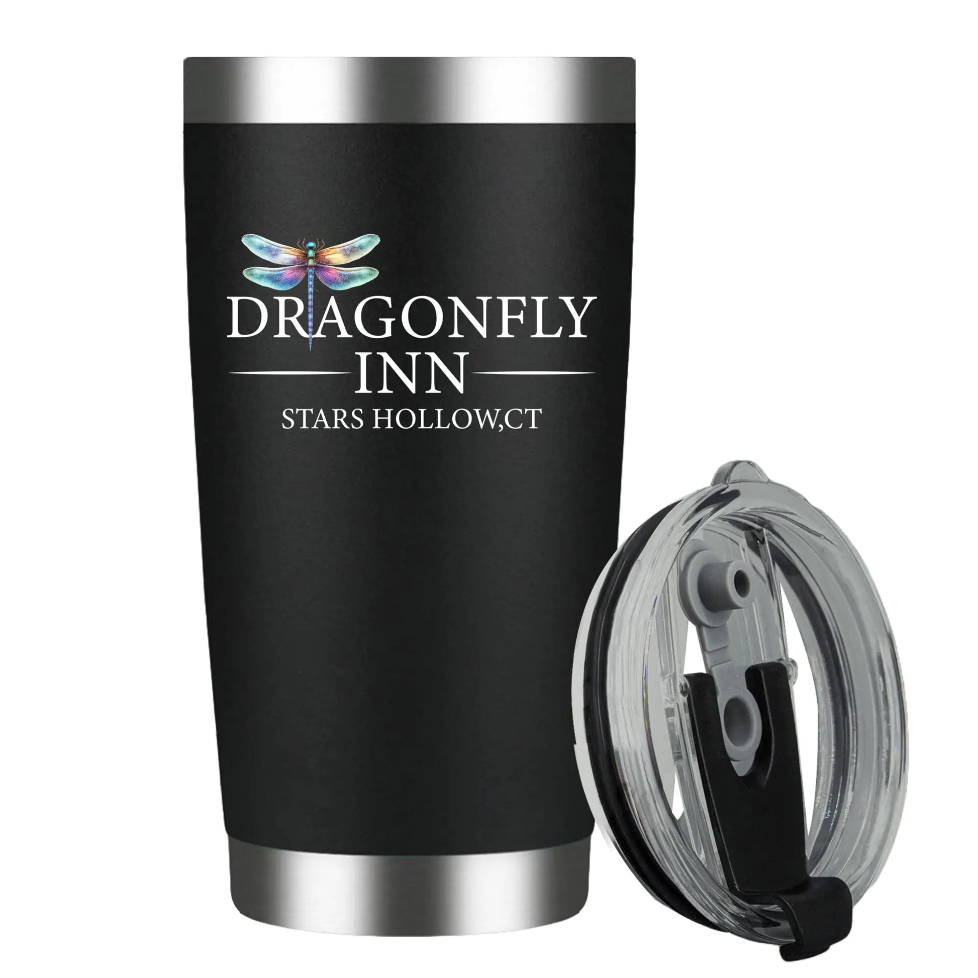 Dragonfly Inn Black Stainless Steel Insulated Tumblers20 Oz Personalized Vacuum Coffee Mug- Gilmore Girls Merchandise - Gifts for Women Mom- Unique Birthday Gifts