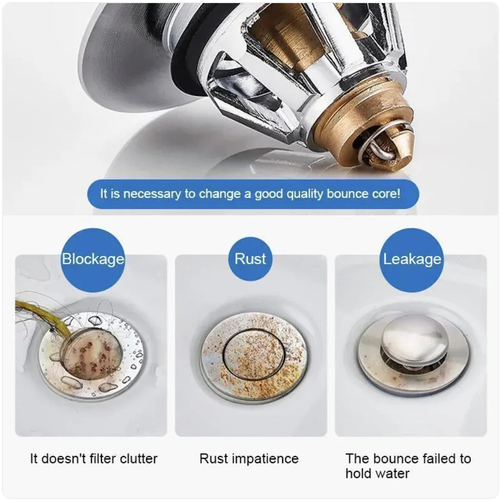 - Easy Installation: Designed for hassle-free installation, this pop-up drain pipe requires no tools. Simply remove the old unit and insert the new bounce core.