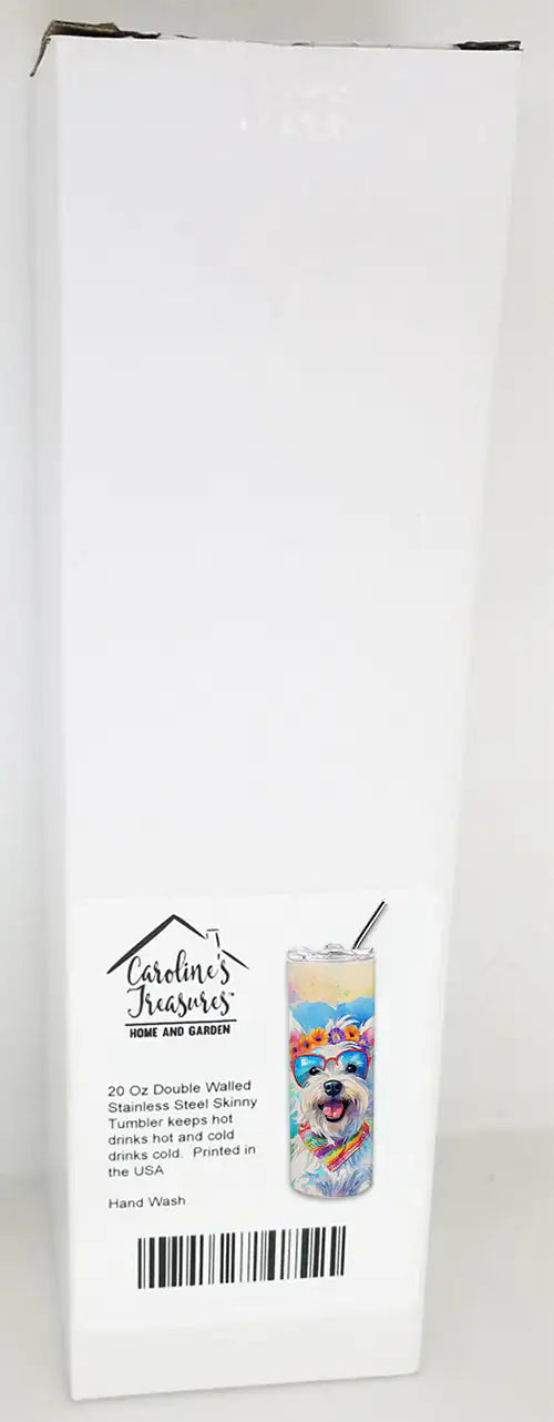 Stainless Steel Skinny Tumbler featuring breed specific West Highland White Terrier artwork. Elevate your hydration experience with our Decorative Stainless Steel 20 oz Skinny Tumbler from Caroline's Treasures. This vacuum-insulated, double-walled travel mug is designed to keep your beverages hot or cold for prolonged periods, making it perfect for your coffee, tea, or cocktails. Its sleek and easy-to-grasp design, complemented by the vibrant, top-to-bottom artwork, makes it a stylish accessory for both men and women. Equipped with a secure, slide-open lid, you can enjoy your drinks without worrying about spills, while the included reusable metal straw contributes to reducing plastic use and promoting sustainability. Crafted with quality stainless steel, the tumbler is 100% BPA and Phthalate free, ensuring a safe, non-toxic experience with every sip. Not just functional, this skinny tumbler, complete with gift box, serves as a thoughtful gift for women, mothers, or any loved one. Enjoy your favorite beverages on the go in style, while making a positive impact on the environment. Remember, it's not just a drinkware, it's a lifestyle accessory! Please note: For optimum longevity, hand washing is recommended.